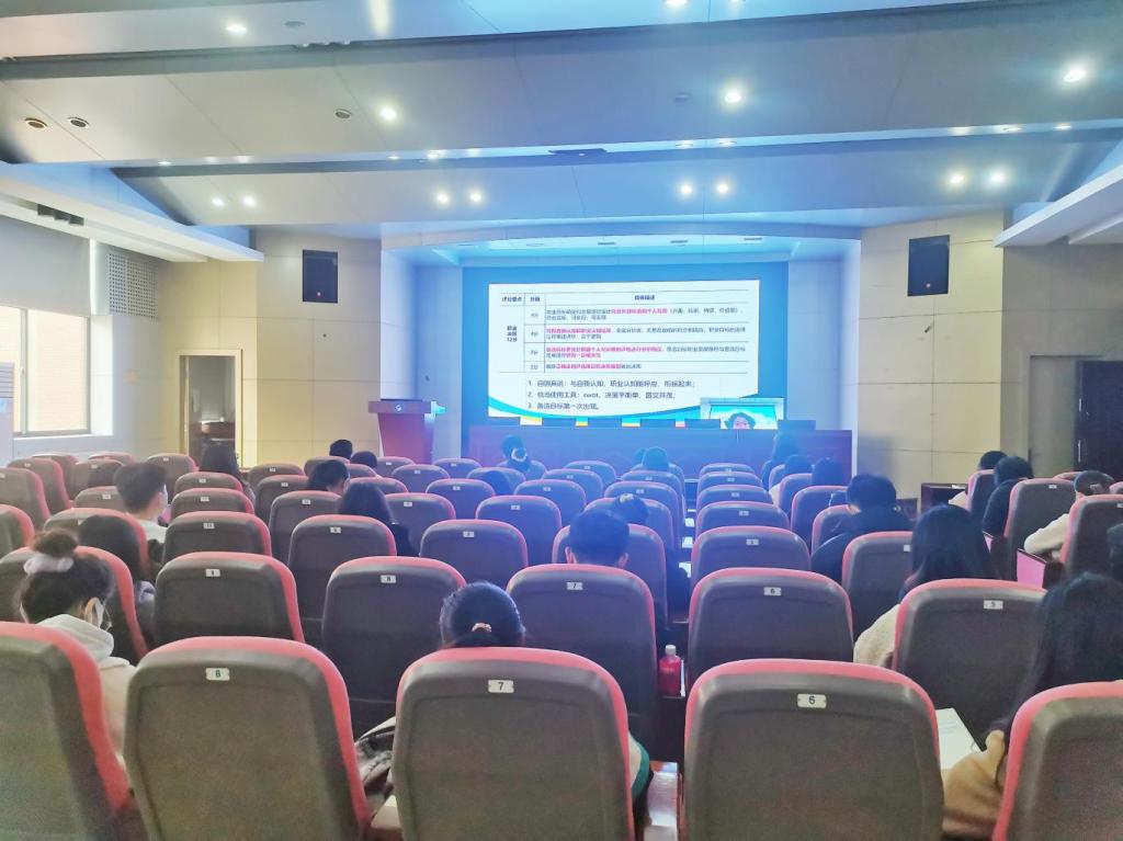 校员工处刘亮亮老师介绍了职业生涯规划大赛的意义,同时希望同学们深入了解老员工职业生涯规划大赛的比赛流程,提前做好准备。中国海洋大学辛远征老师,通过线上直播的方式作了“以大赛为支点,撬动未来职业发展”的报告,辛老师分享了职业生涯规划书的撰写经验,指导同学们要认识职业生涯规划大赛,积极参与比赛,提升自我认知能力。材料公司薄艳艳老师作为上一届大赛获奖选手指导老师,分享了比赛经验和指导经验,并鼓励大家积极备赛,努力取得好成绩。