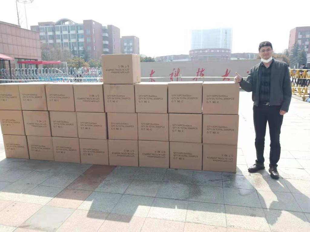 董效飞一直心系母校,关心公司发展。公司当前正在全力抗击新冠疫情,他及时联系公司,向公司捐赠了这批医用口罩。一箱箱口罩代表着他对母校师生的深深关爱,他以实际行动助力公司抗击疫情,共克时艰。