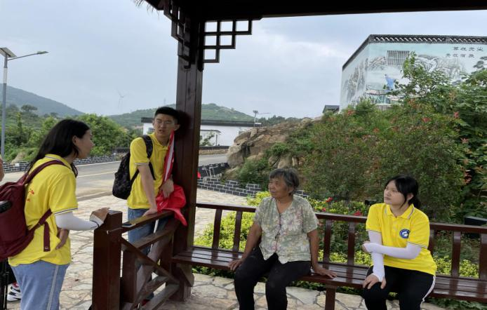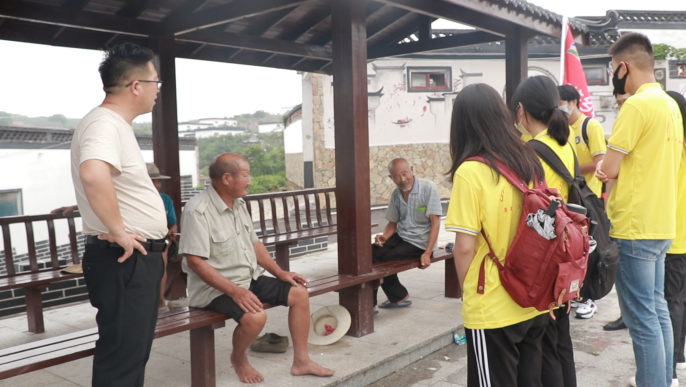 (图为实践队成员与村里老人访谈)