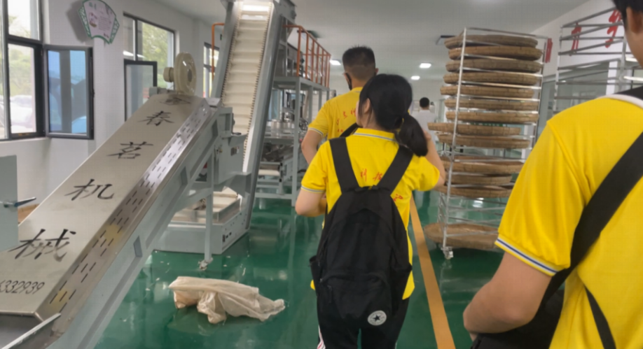 (图为实践队成员参观制茶流水线)