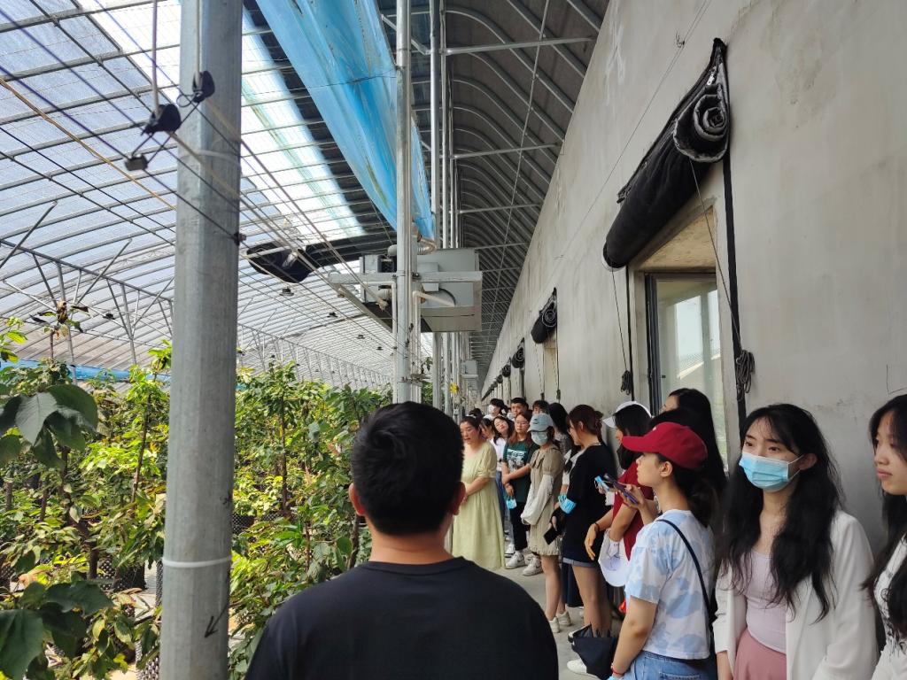 团队来到一个村里,村书记带团队参观了这里的技术大棚,介绍了大棚养殖技术,并与团队进行了深入的探讨。
