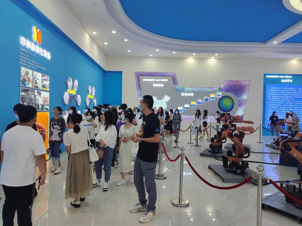 公司的科研组长带领团队成员参观了企业的科研成果,讲解机器手臂的作用和机械手臂对比传统人工的优点。