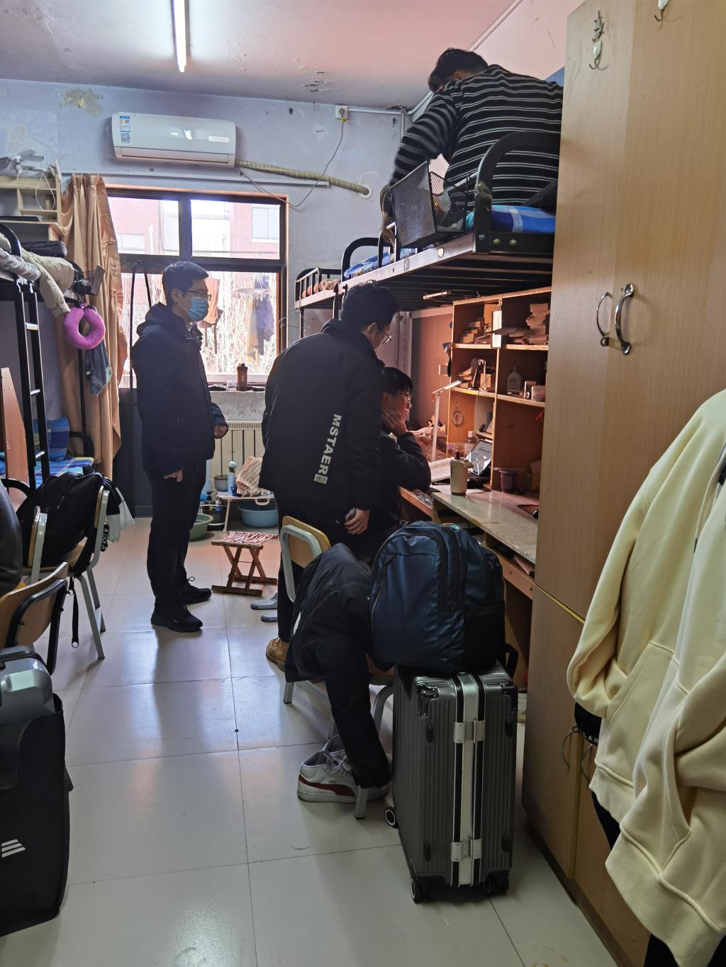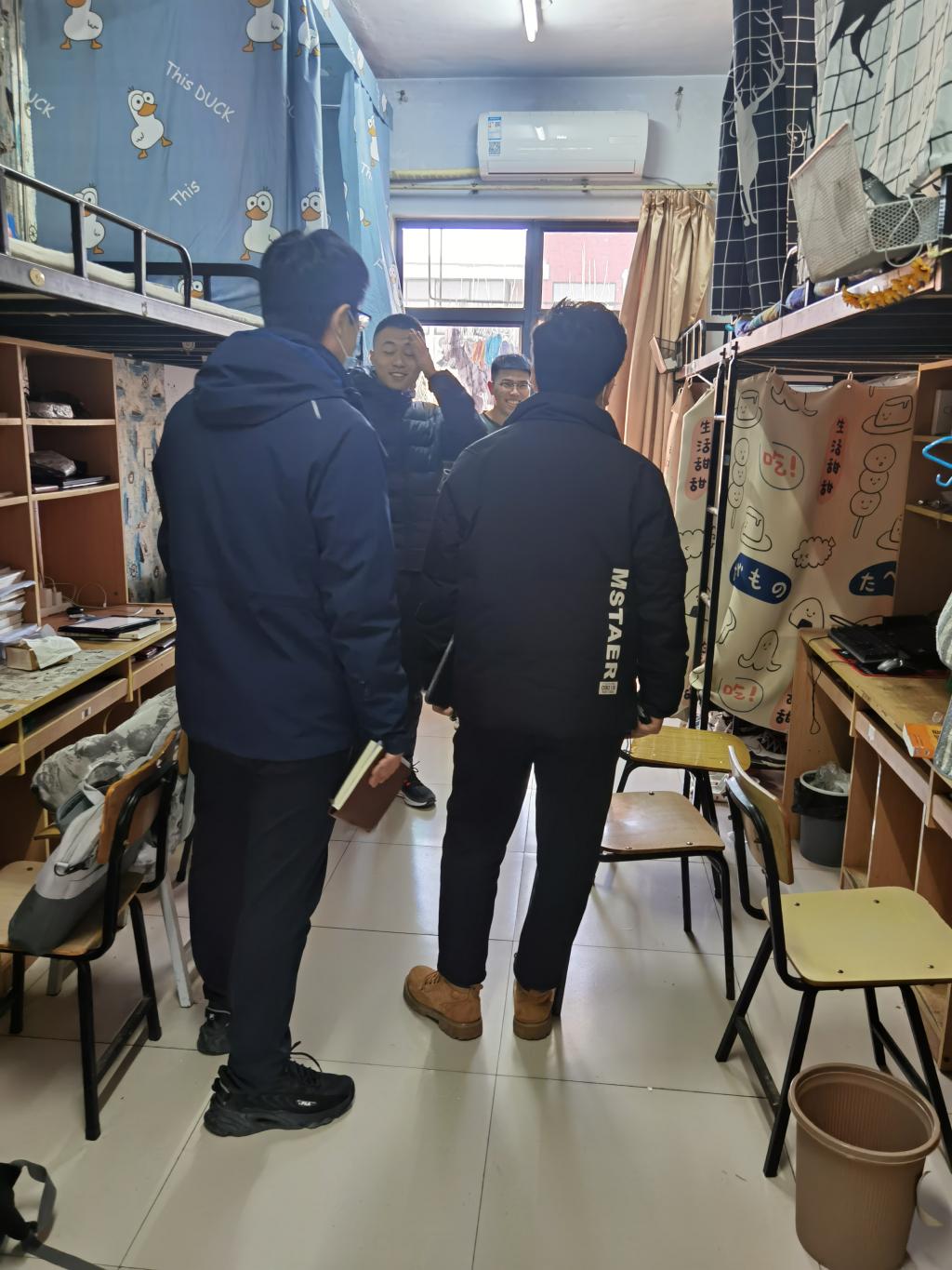 会后各年级辅导员前往员工宿舍与同学们面对面的进行交流,督促大家做好卫生清扫工作,尽快适应校园学习生活。