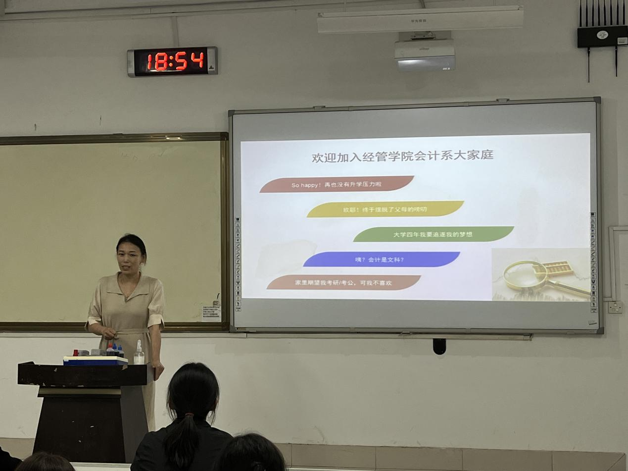 在本期专业认知教育课上,国贸专业系主任孙江永老师、班主任武志恒老师、大数据管理与应用专业的班主任康宏、张福平老师以及会计学专业的班主任李芳、李成宇老师分别向同学们就本专业的培养计划、课程安排及专业未来发展方向进行了讲解,并对同学们的一些疑惑进行详细解答,鼓励同学们积极规划好自己的老员工活,认真对待专业课的学习,与老师、同学多交流,加强思想碰撞,不断完善自己,促进自身综合素养的提高。