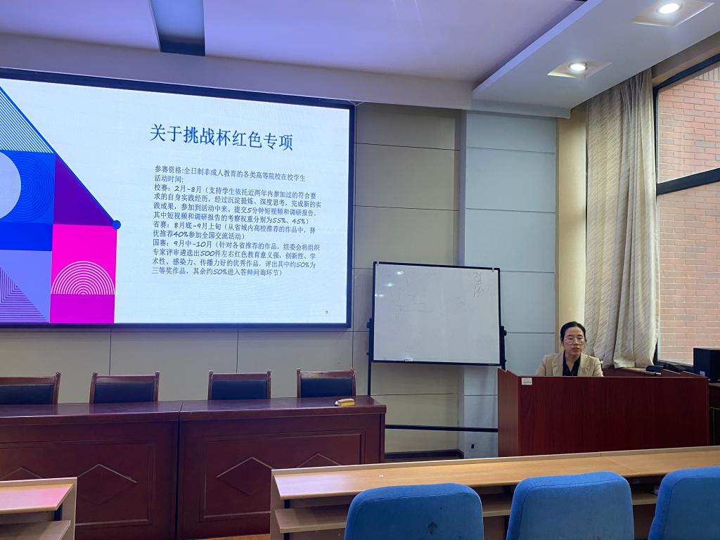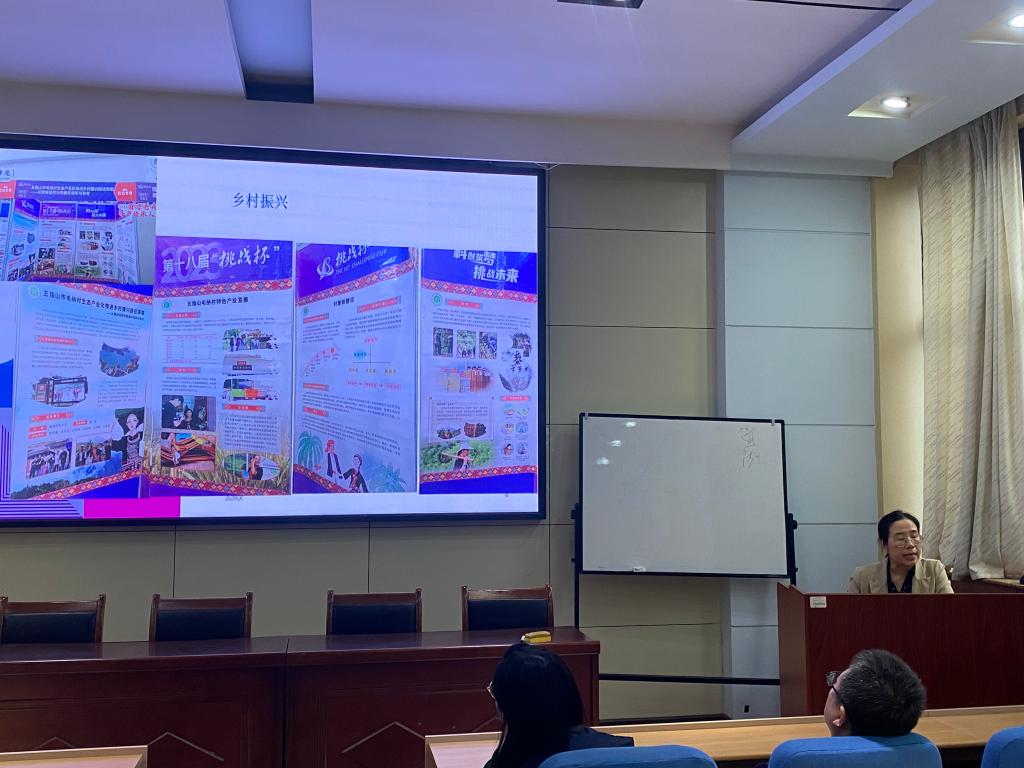 分享会上江谭介绍了红色专项赛道的具体比赛要求,并从四个一:上好一堂红色课、组建一支实践团、形成一件好作品、开展一次交流分享了介绍了比赛,希望同学们根据比赛要求更好的完善自己的作品。此外,针对本次比赛江老师详细从乡村振兴、民生福祉以及中国之治三个方向通过优秀作品案例的形式为同学们讲解分析了优秀作品,建议同学们从中汲取经验,反思自己的作品,找出不足之处,争取下一年参与比赛再接再厉。