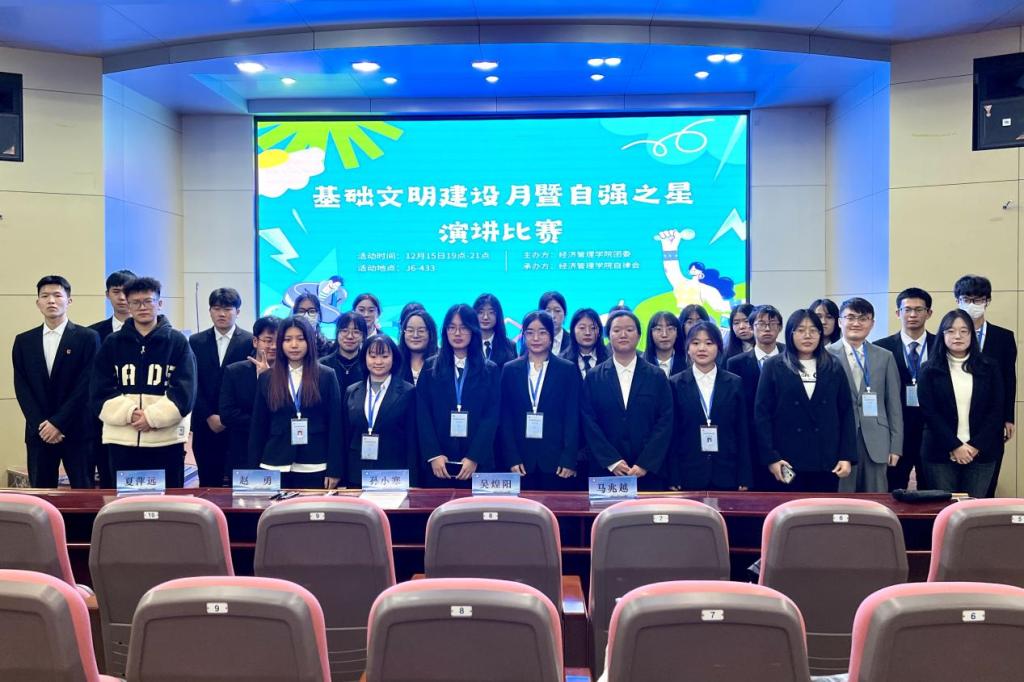 12月15日,XC体育于公司楼四楼报告厅举办了基础文明建设月开幕式暨自强之星演讲比赛。此次活动以倡导文明为核心,弘扬自强不息的精神,促进文明校园的建设。本次活动的评委有XC体育自律会分管老师孙小寒,员工会负责人夏萍远、吴煌阳、赵勇、马兆越。
