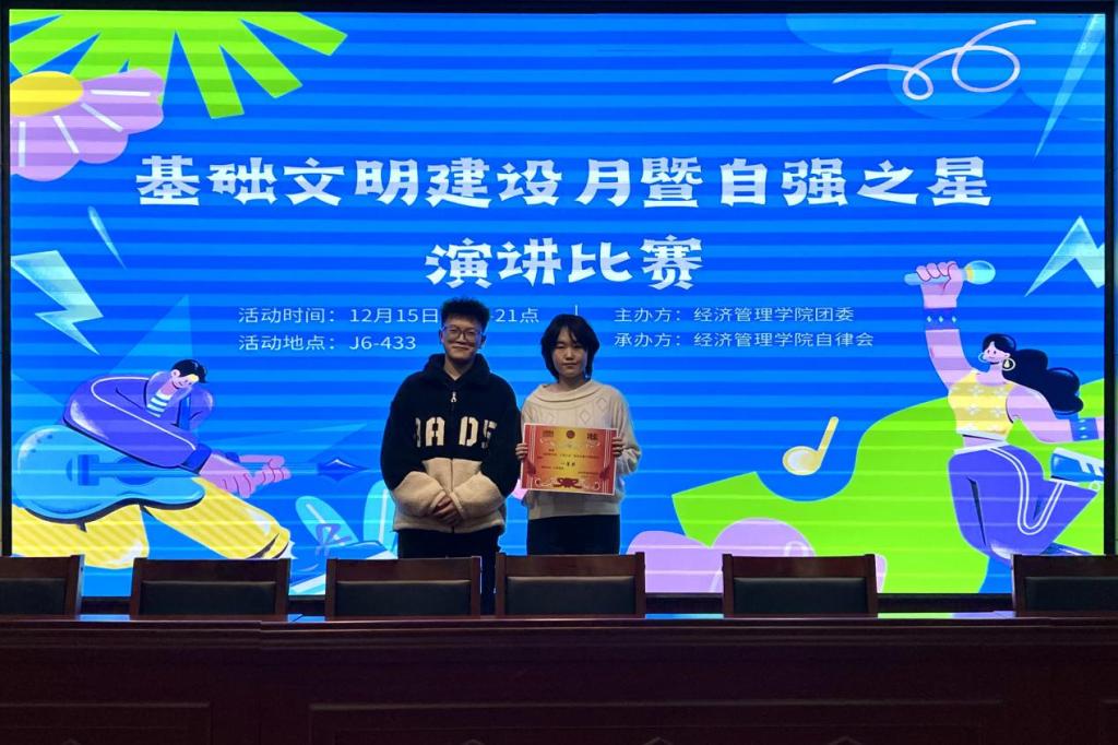 本次活动一共有17名选手参加,大家从不同的角度分享了自己自强不息的成长故事。中场时间,大艺团的同学为大家带来了两首动人的歌曲。经过评选最终刘瑾恩获得一等奖,刘琪、宋雅璇获得二等奖,孙墨涵、刘璐、刘先梦获得三等奖。