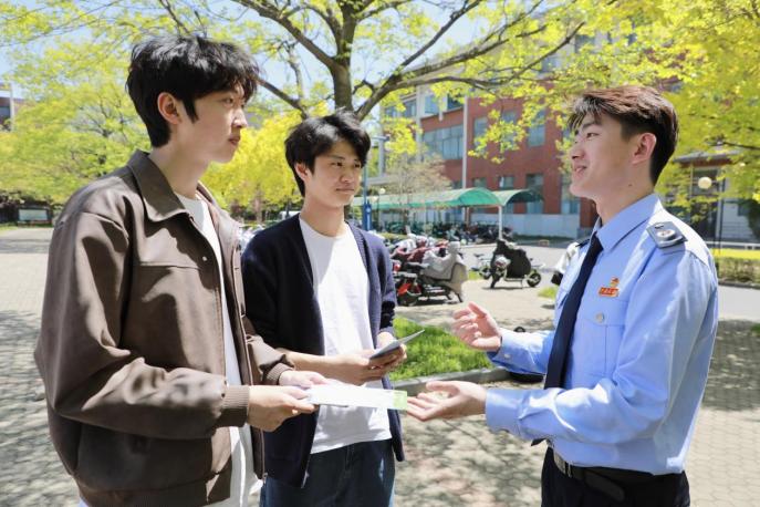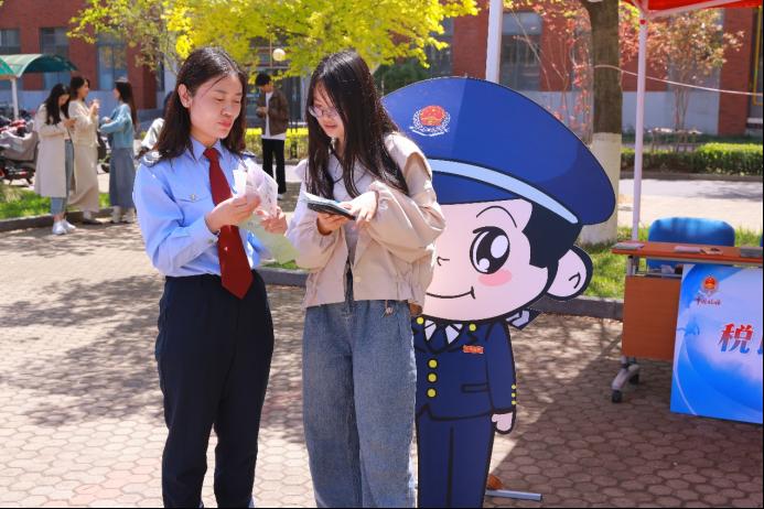 第二环节在繁星广场进行,由文明礼仪宣讲团辅助税务局工作人员开展税务知识宣传活动。活动现场,工作人员给同学们发放税务知识宣传册,普及税法知识,解读税费政策,把税法送进校园,传给同学,让同学们了解税务知识。同学们就税收政策方面的疑问与工作人员进行了互动交流。
