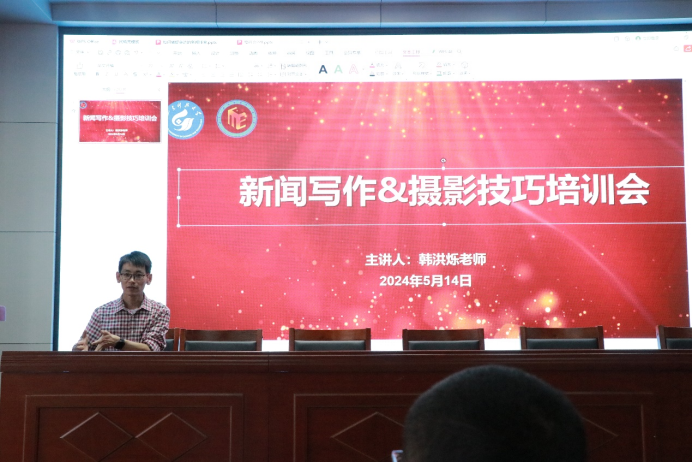 5月14日,XC体育在公司四楼报告厅成功举办新闻写作与摄影技巧培训会。会议邀请了宣传部韩洪烁老师做报告,公司辅导员陈照志、公司新闻媒体部全体人员参加会议。