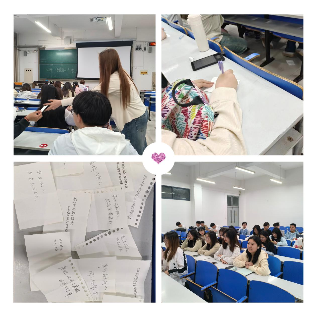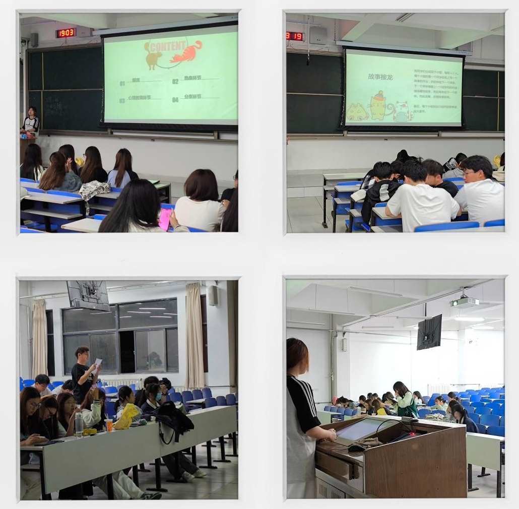 其中,工商管理2023-1班开展“心灵共鸣:故事接龙”活动,将同学们分成若干小组,每个小组的第一个同学在纸上写一个故事的开头,然后传给下一个同学,下一个同学根据上一个同学写的内容,继续编写故事,然后再传给下一个同学……如此类推、直到故事结束。最后,每个小组将自己创作的故事读给大家听。该活动不仅培养了同学们的团队合作能力和创造力,同时也能让大家在轻松愉快的氛围中更加熟悉彼此,释放压力。23级金融学专业开展“心桥-传递爱心之旅”活动,通过为同学们发放印有陌生人祝福的纸条,并让同学们在纸条上写下他们的祝福的形式,搭建起同学们善心连接的桥梁,让同学们不仅感受到来自陌生人的祝福,更传播了自己的正能量。23级国际经济与贸易专业开展“吐气放压,休闲心灵”活动,通过让同学们在内心思索最近的烦恼压力,把心中的“郁气”吹进气球里,从而起到释放压力的作用。各班组织的活动各具特色且富有意义,在游戏过程中,同学们不仅学习到了更加专业的心理知识,对以后的学习、生活、爱情等方面有了更加清晰地把控,还释放了学习生活的压力,为自己拥有一个健康的心理打下坚实的基础。