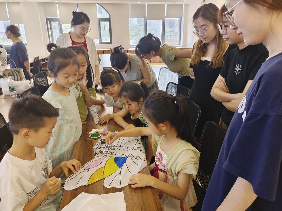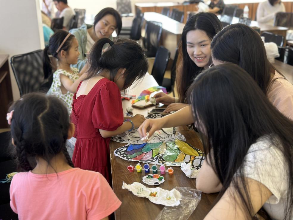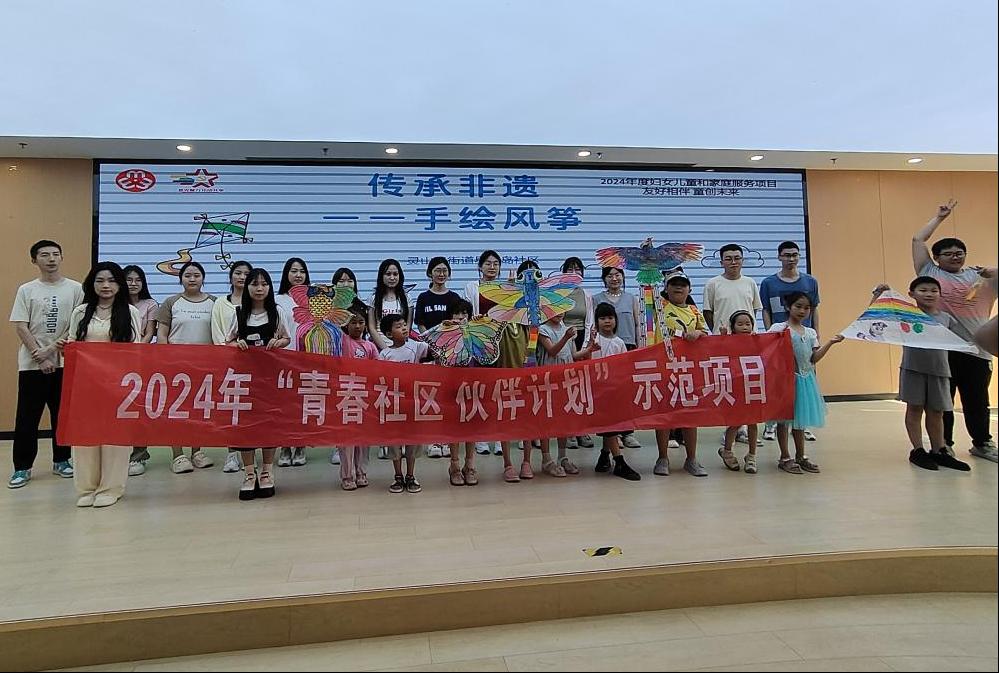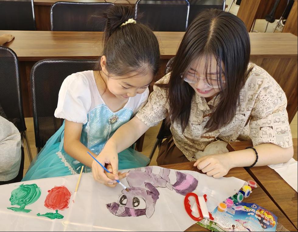 接着,团支部组织开展了风筝扎制以及涂色工艺的体验活动。在团支部成员的指导下,社区小朋友们充分发挥创造力和想象力,积极协作,完成了风筝扎制和绘画涂色。期间,支部成员积极帮助小朋友解答疑惑,引导他们保护和传承非物质文化遗产。