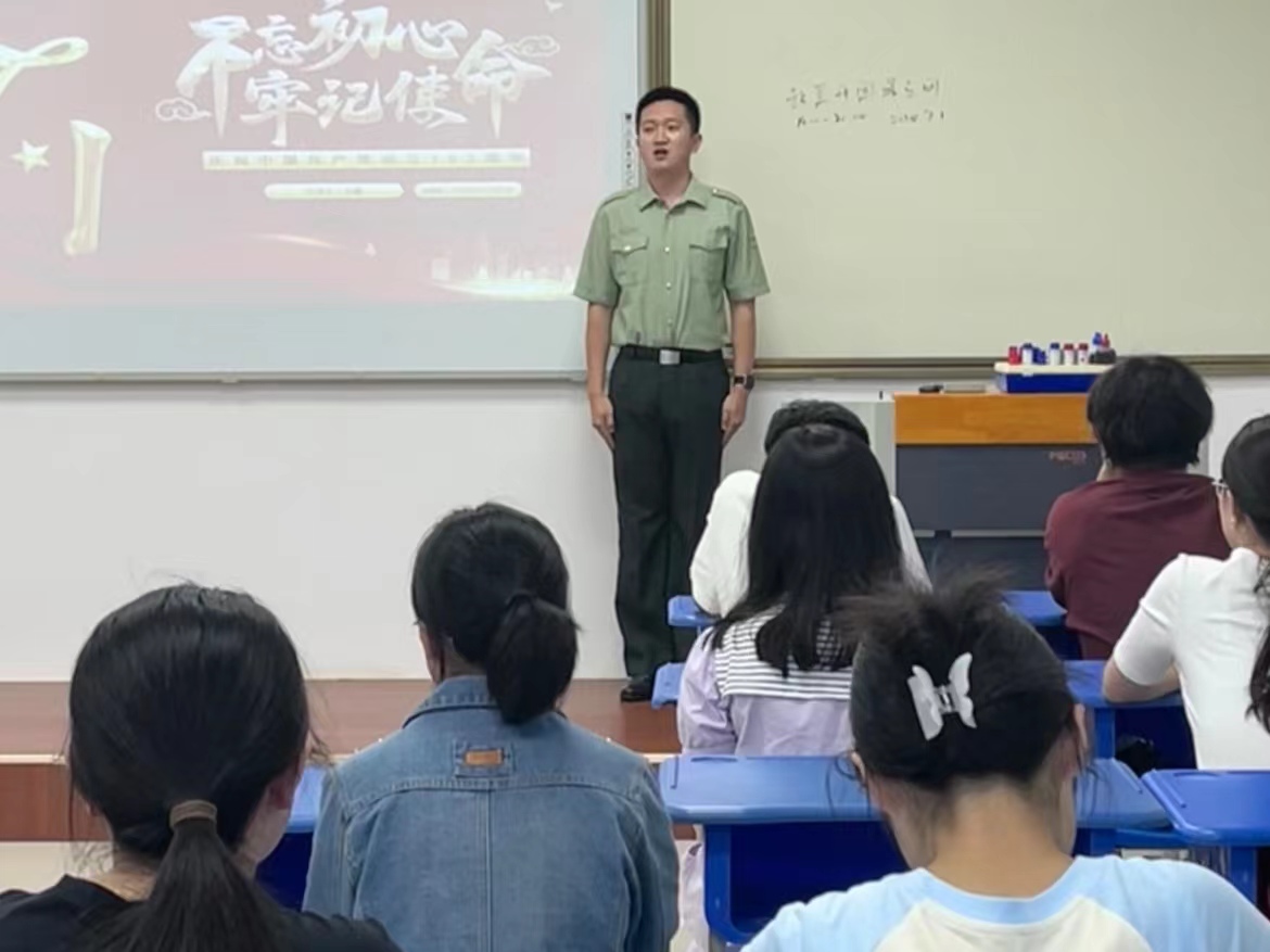会计学2023级2班邀请了退役老员工王璇宣讲入伍经历。王璇同学的宣讲深入浅出,不仅回顾了党的光辉历程,还结合自身在军队中的经历,讲述了如何在不同岗位上体现自己的价值。他的话语朴实而感人,让在场的每一位同学都深受启发。