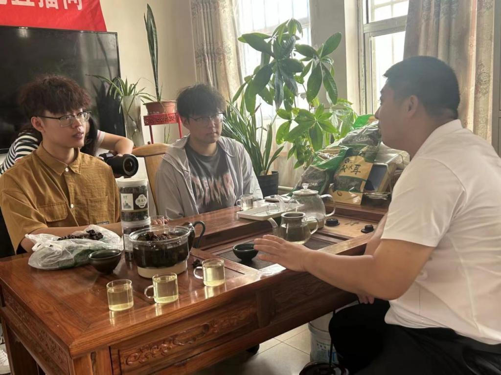 团队对王本顺书记进行主题为“电商助农”的访谈,王书记从直播时遇到的困难、电商直播爆火后对村子带来的改变或影响、对“电商与乡村振兴之间关系”的看法、未来如何通过电商平台更好地销售农产品等四个方面介绍相关情况,与队员们进行了互动和交流。