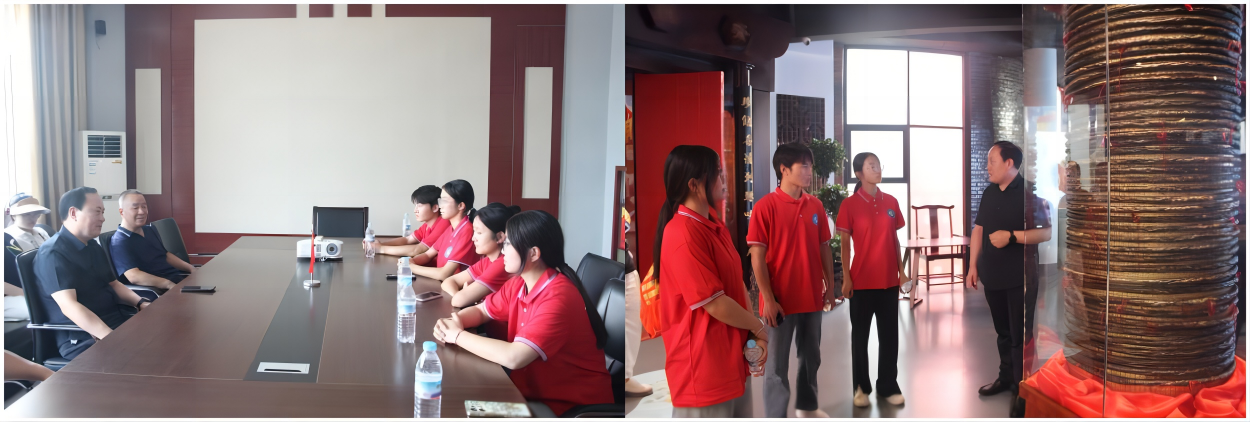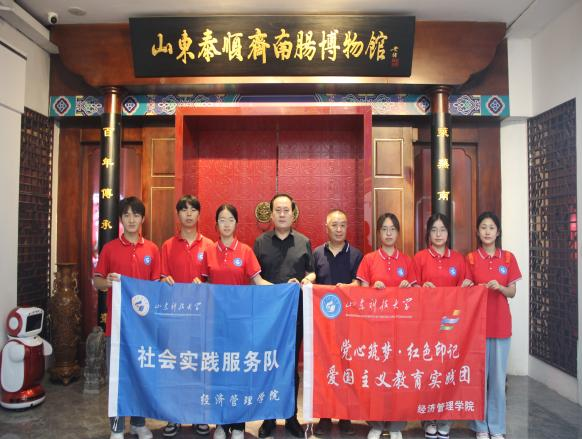 实践团队来到泰顺斋南肠博物馆进行参观,参观完毕后,与泰顺斋南肠第六代传承人刘锋先生进行了座谈交流。会上,双方围绕非遗文化的传承与发展以及如何利用数字化手段推动红色文化传播等议题展开了讨论。