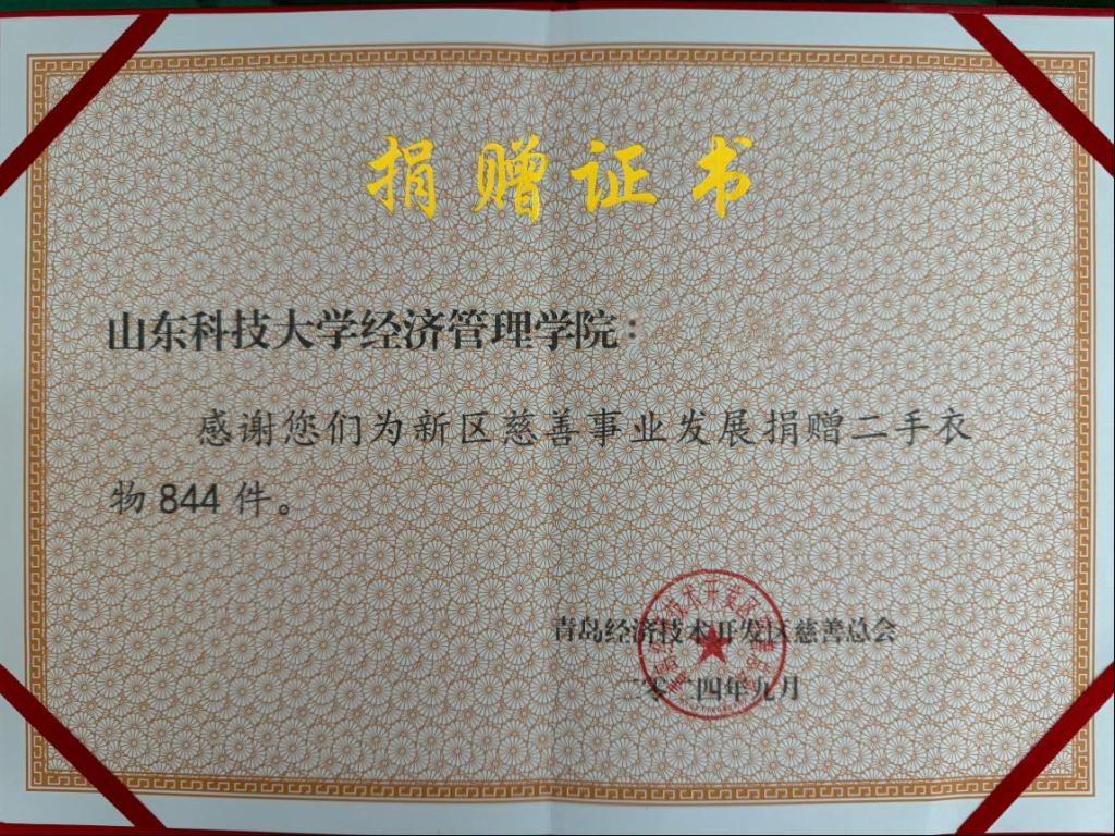 9月24日,青岛经济技术开发区慈善总会与市政公司、黄岛作业队及爱心衣物捐赠点工作人员一同前来公司完成衣物交接,并颁发荣誉证书以表感谢。今后,XC体育计划常态化开展此类活动,以推广环保理念,深入推进校园公益文化发展,让爱与责任在校园内薪火相传,为构建绿色校园、和谐社会贡献积极力量。(通讯员:于鹏伟 王敏 马广博)