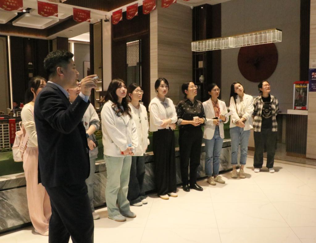 康大豪生酒店经理李璐颖、康大地产营销经理刘晓平分别带领公司师生实地参观了康大豪生酒店以及青岛康大房地产开发有限公司,传达了康大集团“事业共创,成就共享”的核心价值观,同时,希望以此为契机,深化与公司多渠道交流协同,共育创新性应用人才,不断开创“合作共赢、资源共享、人才共育、优势互补”的院企共建新局面。