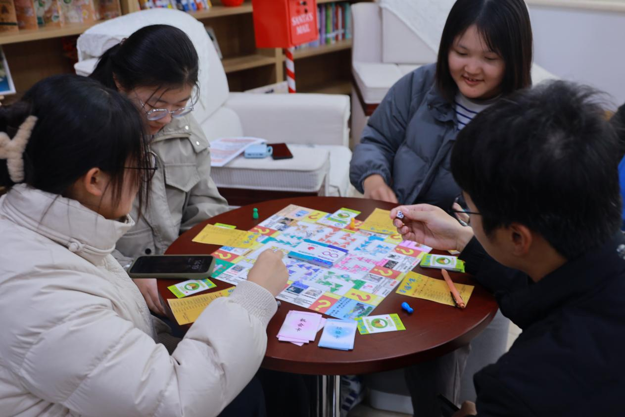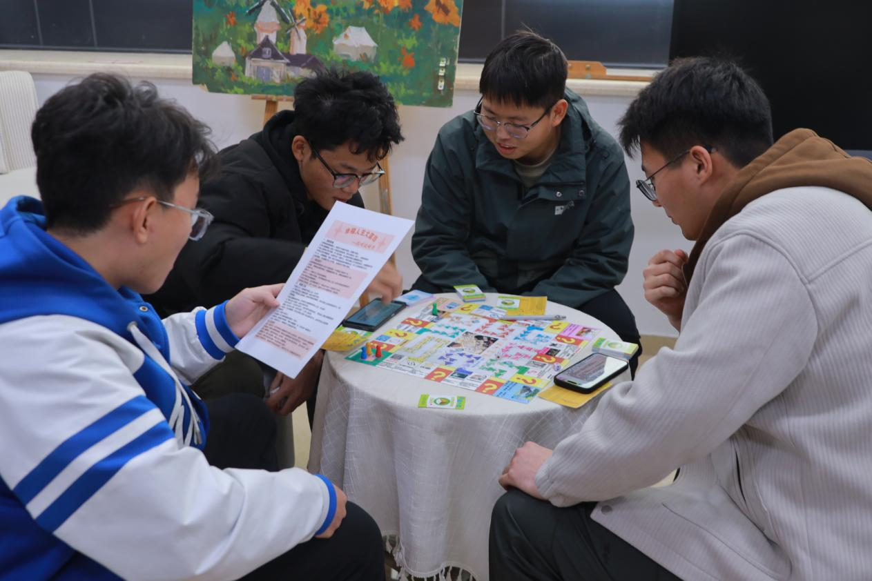 本次游戏以“老员工模拟经营人生”为主题。同学们以小组为单位,通过大富翁游戏形式模拟经营人生和职业抉择,体验和学习心理学知识和心理调适技巧。活动氛围轻松愉悦,为同学们提供了生动有趣的情景化学习体验。