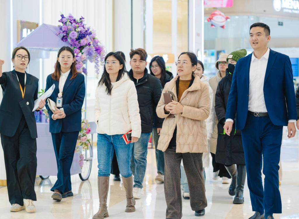 毕业生员工张晓宁带领大家参观了吾悦广场的潮流卖品和火爆的人气餐厅,介绍了企业的智能管控平台、先进的管理模式以及优秀企业文化与经营理念。参观结束后,XC体育与吾悦广场山东区域举行交流座谈会暨实习实践与创新创业基地签约揭牌仪式,江谭与李甲荣共同签署了校企合作协议。江谭在签约仪式上表示,此次校企合作是公司推进产教融合、提升人才培养质量的重要举措,有利于拓宽公司学子实习实训平台,实现互利共赢。陈刚强调,企业高度重视人才培养与技术创新,校企合作有助于为企业注入新活力,实现企业发展与人才培养的良性互动。