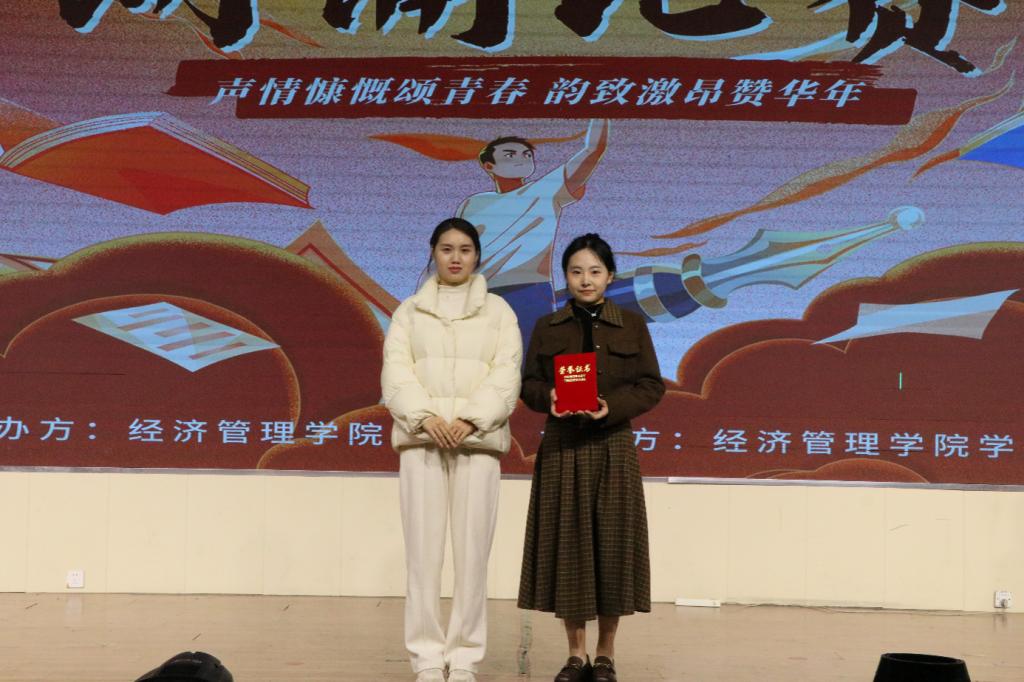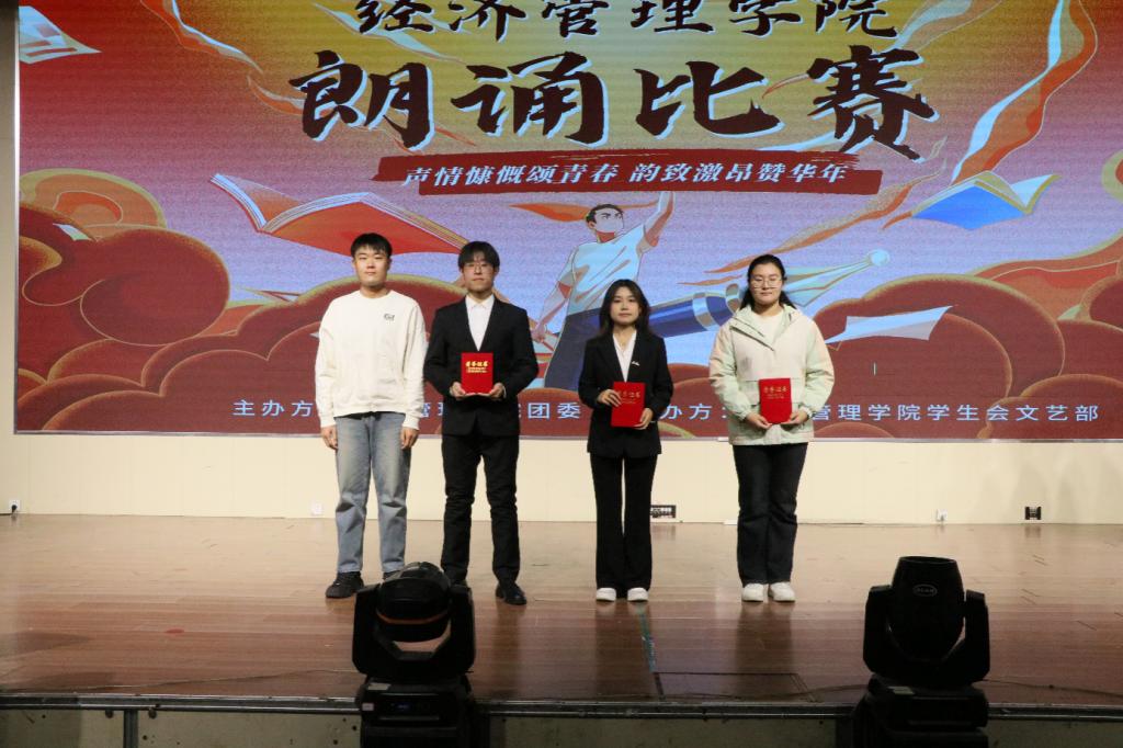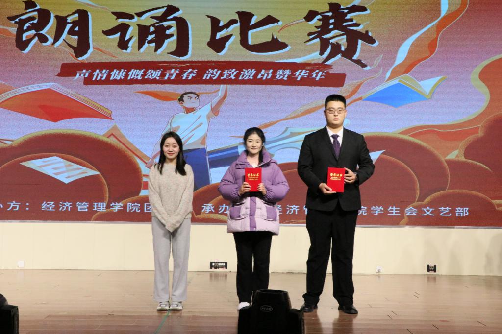 朗诵作品涵盖中华传统诗词、散文及红色经典文学作品等多种体裁。比赛现场,选手们声音洪亮圆润,语言规范,表达流畅清晰,情感饱满真挚富有感染力,朗诵形式配以音乐和视频,富有创意,深刻体现了作品蕴内涵和情感色彩,引发了现场观众共鸣。经过激烈角逐,王一清荣获一等奖,郭晴晴、尹志凡荣获二等奖,支果粱、苗释匀、牛雅茹荣获三等奖。