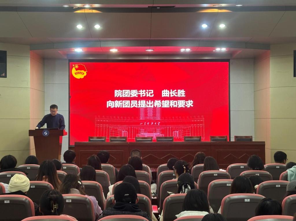 曲长胜向新团员提出希望和要求:一是要坚定理想信念,筑牢思想之基,用党的科学理论武装头脑,用党的光辉旗帜指引前行;二是要丰富知识学识,练就过硬本领,沿着求真理、悟道理、明事理的方向前进;三是要投身社会实践,挺膺青年担当,坚持知行合一。最后,全体团员齐唱团歌《光荣啊,中国共青团》,诠释青年壮志。