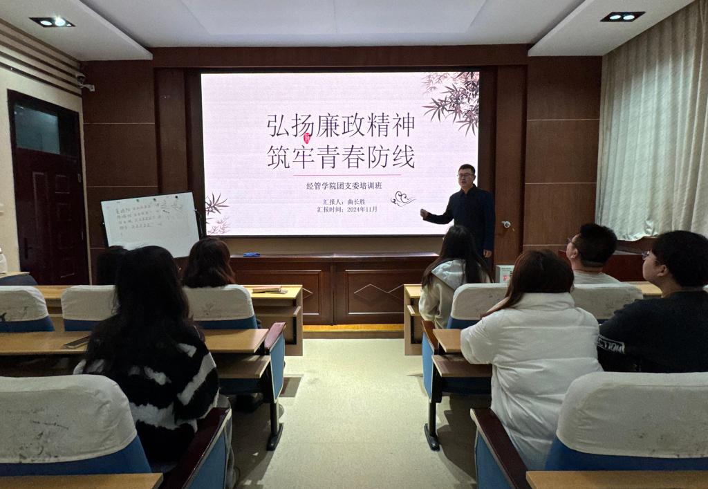 11月4日,团委书记曲长胜以“弘扬廉政精神 筑牢青春防线”为主题作首场专题培训,深入剖析了当前共青团工作面临的新形势、新任务,鼓励团支委成员要勇于担当、积极作为、作风清廉,努力成为新时代的先锋力量,激发了在场团支委成员的工作热情和使命感。