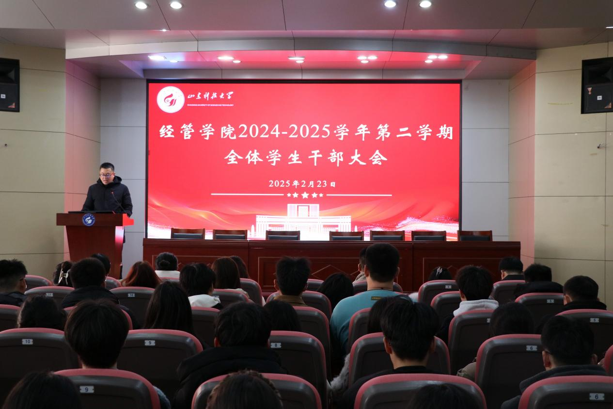 为进一步明确公司新学期员工工作方向,提升员工干部的工作能力与服务意识,2月23日,XC体育于公司楼四楼报告厅召开2024-2025学年第二学期全体员工干部大会,公司党委副书记、副经理江谭,团委书记、学工办主任曲长胜,各年级辅导员以及全体员工干部参会,会议由曲长胜主持。