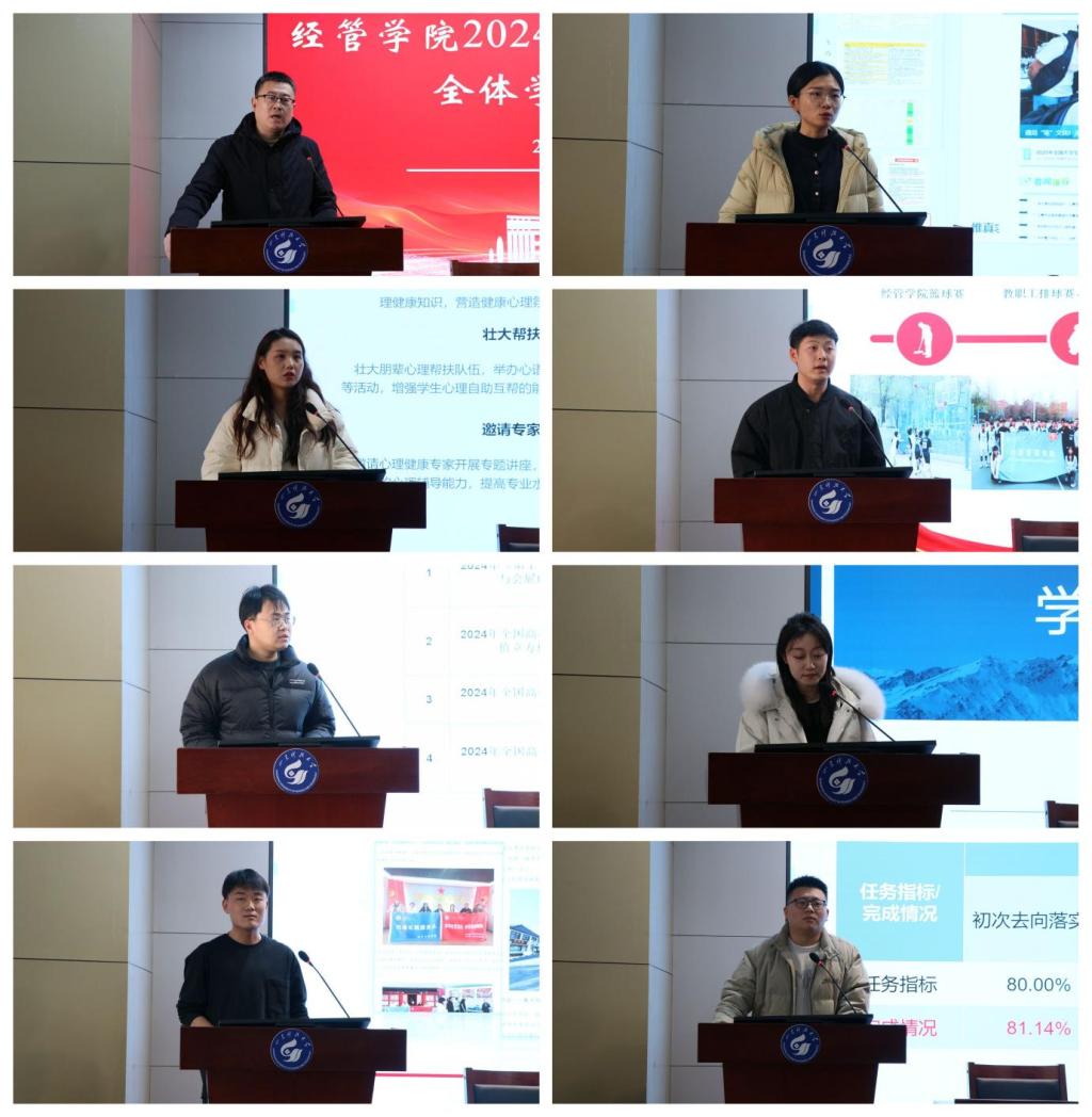 辅导员范文洁介绍了公司寒假社会实践开展情况,号召同学们积极主动参加各类社会实践活动。辅导员李含聪介绍了老员工心理健康相关知识,要求员工干部关注特殊员工群体,及时反馈员工思想动态、情绪变化等情况。辅导员薛传旭对公司文体活情况进行总结,分析优点不足,明确今后目标。辅导员孙小寒介绍了公司2024年老员工科技创新成果获奖情况,对本学期的科创比赛工作提出要求,鼓励同学们积极参赛,用心备赛,勇于挑战自我。辅导员逄楚铭对公司宿舍卫生、精监情况进行了总结分析,对新学期的宿舍工作做出安排。辅导员于鹏伟对公司新闻宣传工作进行总结,明确后期将开展新闻宣传专题培训,夯实网络思政育人阵地。辅导员王鹏民围绕就业形势、就业政策等方面对公司就业情况进行介绍,要求员工干部发挥在就业过程中的引领作用。