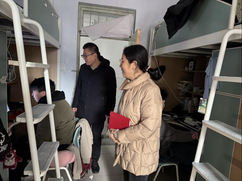 走访过程中,领导老师与员工进行亲切交谈,了解员工思想动态、返校适应情况和成长需求,叮嘱同学们提前制定新学期学业生涯规划,筑牢公寓安全意识,加强体育锻炼强健体魄。同时,辅导员们对员工宿舍进行安全卫生大排查,重点对宿舍用电安全、消防设施、违规电器使用等情况进行了细致检查,对有问题的宿舍及员工进行问题记录、批评教育,限期整改。