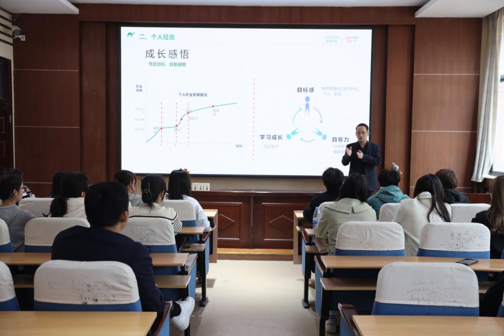 陈刚结合自身职业发展经历,向同学们分享了从基层岗位到管理岗位的成长历程,通过生动工作案例,深入浅出地阐述了职场中突破困境的方法论,激励同学们抢抓机遇,树立积极职业观。王浩然系统介绍了新城控股集团的发展沿革与核心企业文化,阐释了以“骆驼精神”为核心的企业价值观。