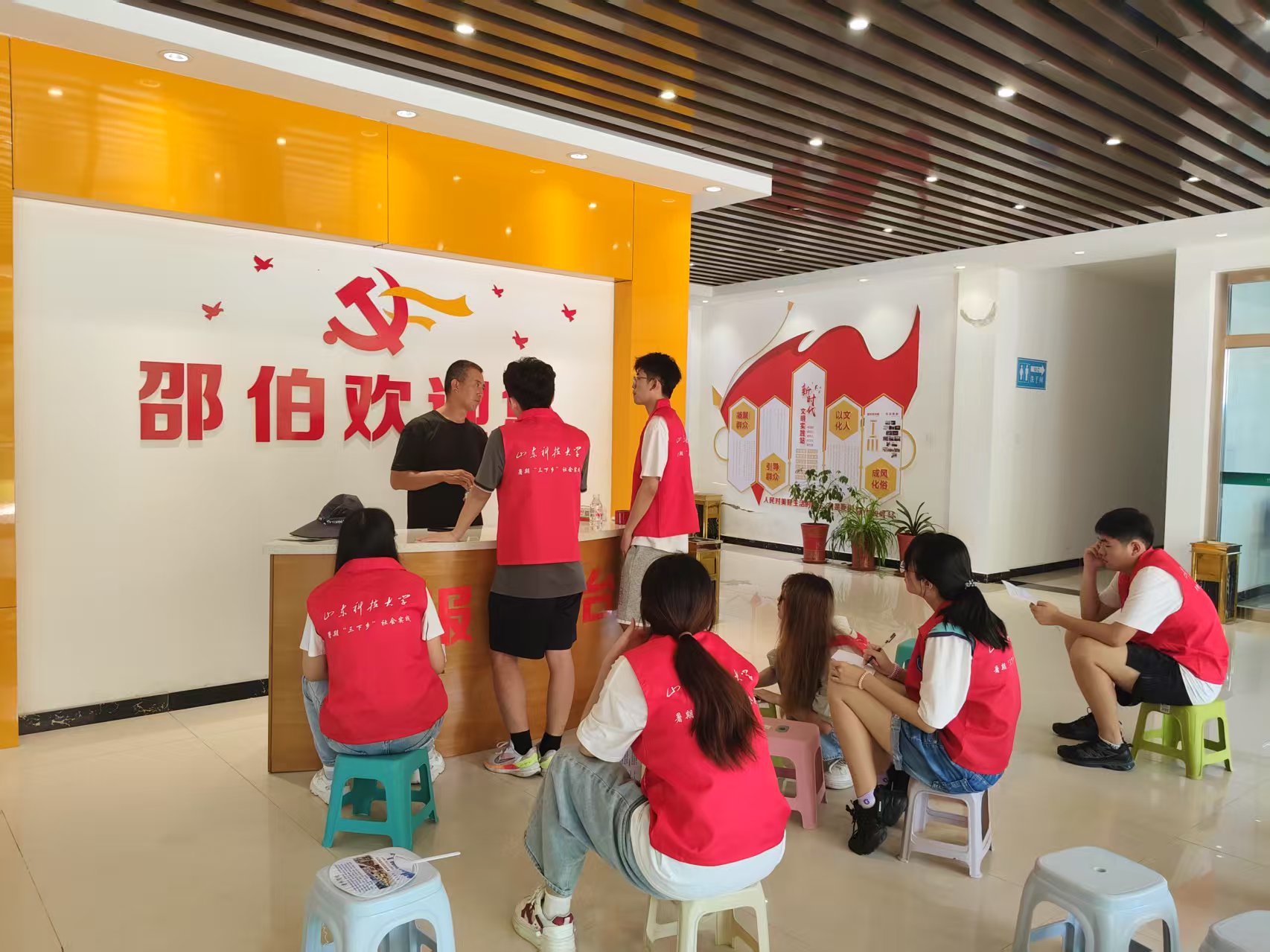 7月17日,实践团队首站抵达邵山庄新村党群服务中心,与邵伯村妇女主任祁永庆进行交流,系统了解该村经济发展概况,实地考察了邵伯村文化馆,切身感受当地浓厚的文化氛围。馆内陈列的剪纸、篾编、刺绣等传统手工艺品,展现了村民精湛的民间技艺;富硒软枣猕猴桃、优质海产品、特色粮米等农产品,彰显了村庄的产业优势;村企合作开发的猕猴桃酒、冻干制品等深加工产品,更体现了产业链延伸的创新实践。