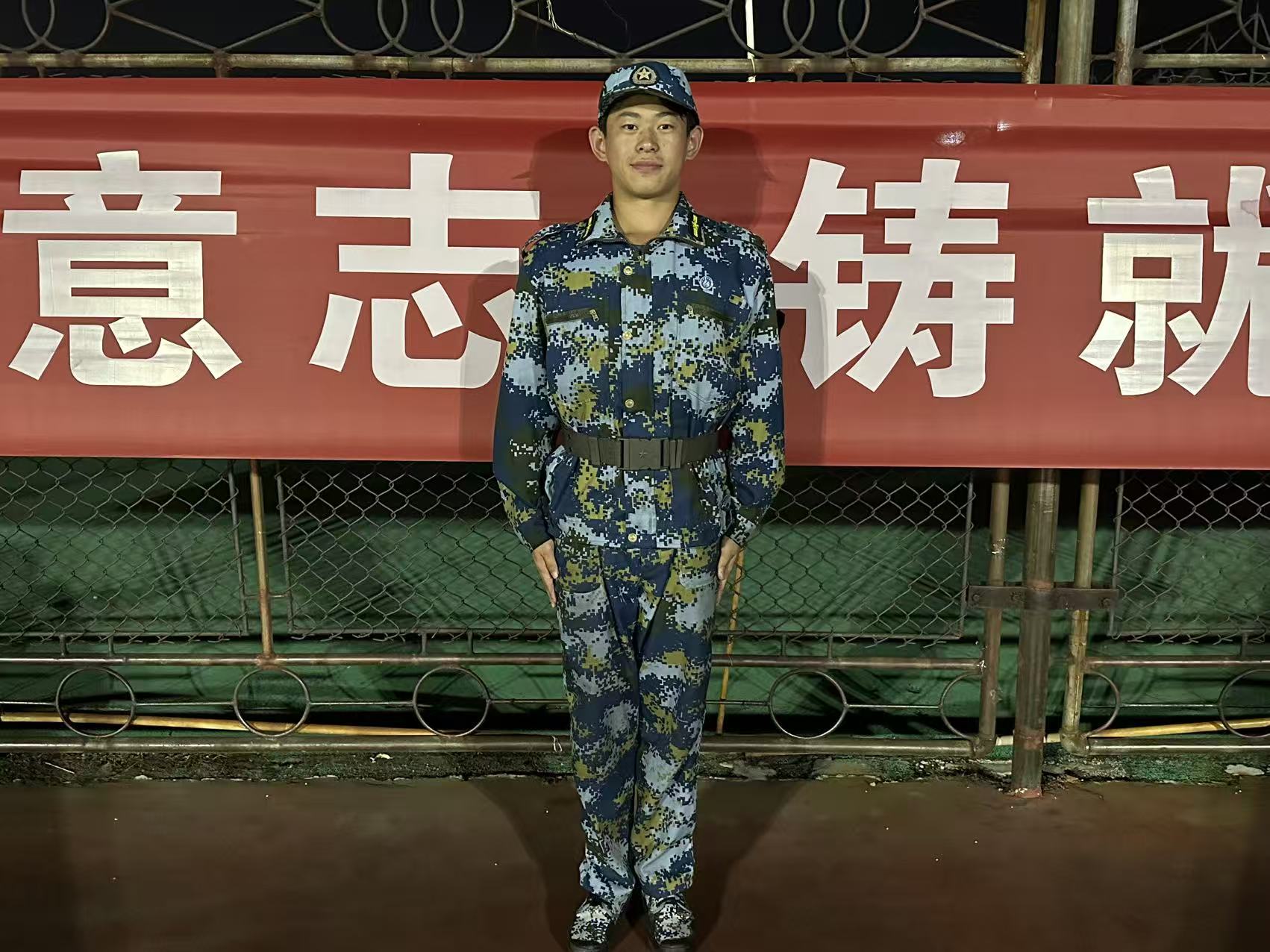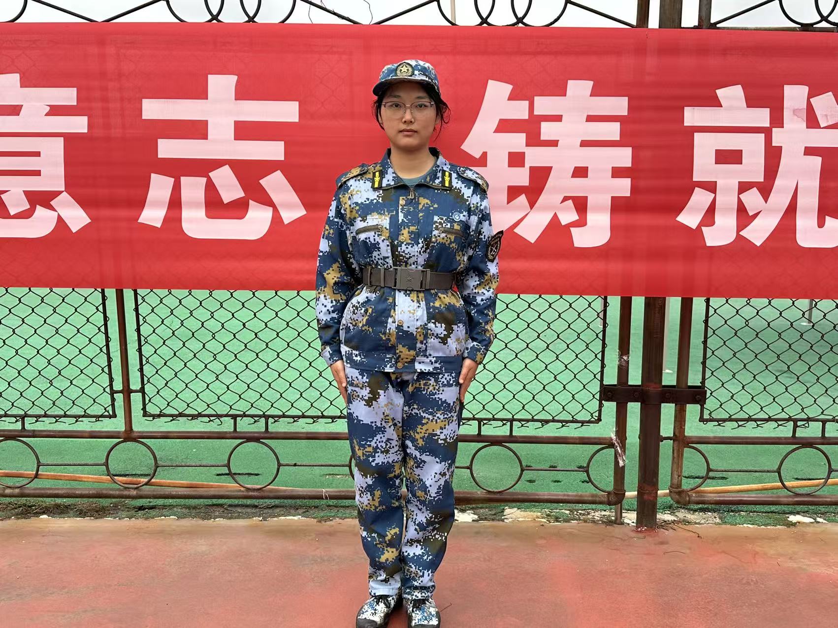 军训感悟:感谢教官耐心指导,也感谢并肩坚持的伙伴。军训虽苦,站军姿、练队列的每一刻,都让我学会坚持。这份荣誉是认可,更是责任。我会把军训中的拼搏劲儿带到往后的学习生活里,不辜负这份肯定!