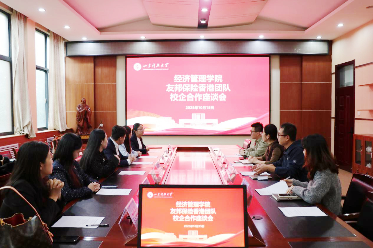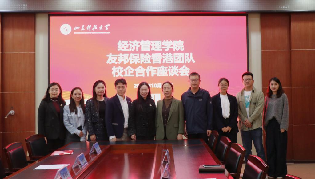 10月15日,XC体育在公司楼309会议室与友邦保险(AIA)香港团队开展校企合作座谈会。友邦保险香港分公司区域经理郑家恩、资深分区经理蔡冠斌、分区经理郑依琳、高级财富管理经理伍圆圆、财富管理经理陈芳芳、济南启迪出国留学有限公司总经理田欣,以及公司党委副书记江谭、团委书记曲长胜,辅导员王鹏民、李含聪共同参加。
