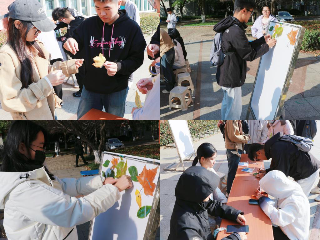 活动创新设置了“情绪色卡认领”“秋日寻叶行动”与“情绪拼图协作”三大主题板块,引导同学们在沉浸式体验中表达自我、疏解压力。参与者通过认领代表不同情绪状态的色卡,在落叶上匿名书写心情与感悟,共同完成情绪主题拼图。