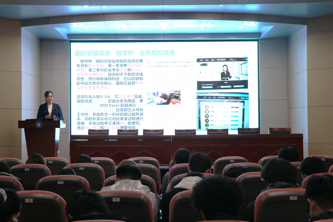 刘瑾恩围绕经管类专业学科竞赛的核心价值与备赛策略展开系统讲解,梳理了各类竞赛的等级划分、具体门类及官方赛程安排,并结合赛事含金量评估,为同学们明确参赛方向。同时,刘瑾恩选取典型竞赛案例,分别从资料搜集、团队组建、方案优化、执行推进、成果复盘等方面逐步剖析各阶段的实施要点,为同学们提供了具体的方法指导。