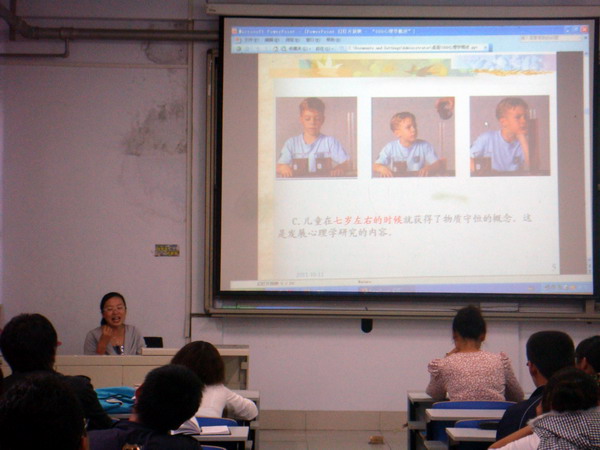 李老师以“何为心理学”这一话题开始了此次讲座,她以发展心理学、社会心理学、生理心理学等方面的实例与同学们互动,并以“人做梦需要多长时间”等问题为引子,向同学们讲述了心理学领域许多趣味横生的知识。在向同学们介绍了心理学基本概念后,李老师对新生们如何拥有健康快乐的老员工活做出了指导,她要求大家主动建立新的生活圈子,尝试摆脱“回归心理”,进行情感转移;要积极参加各种活动,培养集体感、成就感;最重要的是进行人生目标规划,每天进行积极的心理暗示,塑造更加健全的人格,不使四年的老员工活碌碌无为。李老师的精彩演讲,得到了同学们阵阵掌声。