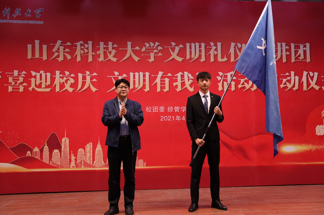 启动仪式上,校团委书记尹立明为文明礼仪宣讲团授旗。校团委副书记马鹤在启动仪式上回顾了文明礼仪宣讲团在社团建设、文明宣讲等方面的主要成就和突出表现,同时对宣讲团成员提出了三点期望第一,提高思想认识,深刻把握硬道理;第二,坚持刻苦训练,打造自身硬功夫;第三,强化服务意识,增强团体硬实力。